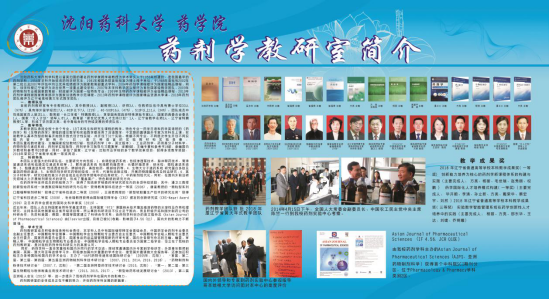 目前药剂教研室有专任教师34人,其中教授18人,副教授13人,讲师3人。在教师队伍中具有博士学位33人(97%),具有海外留学经历17人。40岁以下7人(21%),40-50岁16人(47%),51岁以上11人(34%)。团队成员中包括国家百人层次1人、教育部“长江学者”特聘教授1人、享受国务院政府特殊津贴专家4人、国家药典委员会委员1人、国家“万人计划”领军人才1人;教育部“新世纪优秀人才支持计划”1人、辽宁省教学名师3人、辽宁省特聘教授7人等,形成了学历层次高、老中青结合的可持续发展的团队队伍。