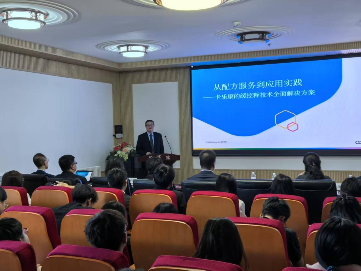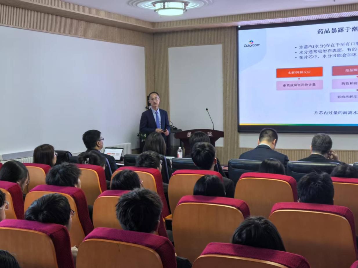 颁奖仪式结束后,卡乐康公司施路经理和杨继荣经理为沈药师生们带来一场精彩的学术报告。介绍薄膜包衣创新进展和缓控释技术全面解决方案,拓宽同学们在工业药剂学领域的知识面,从直压型淀粉辅料加速口服固体制剂的开发工艺和技术要点等方面为同学们开拓了新思路。现场同学们开阔眼界、受益匪浅。