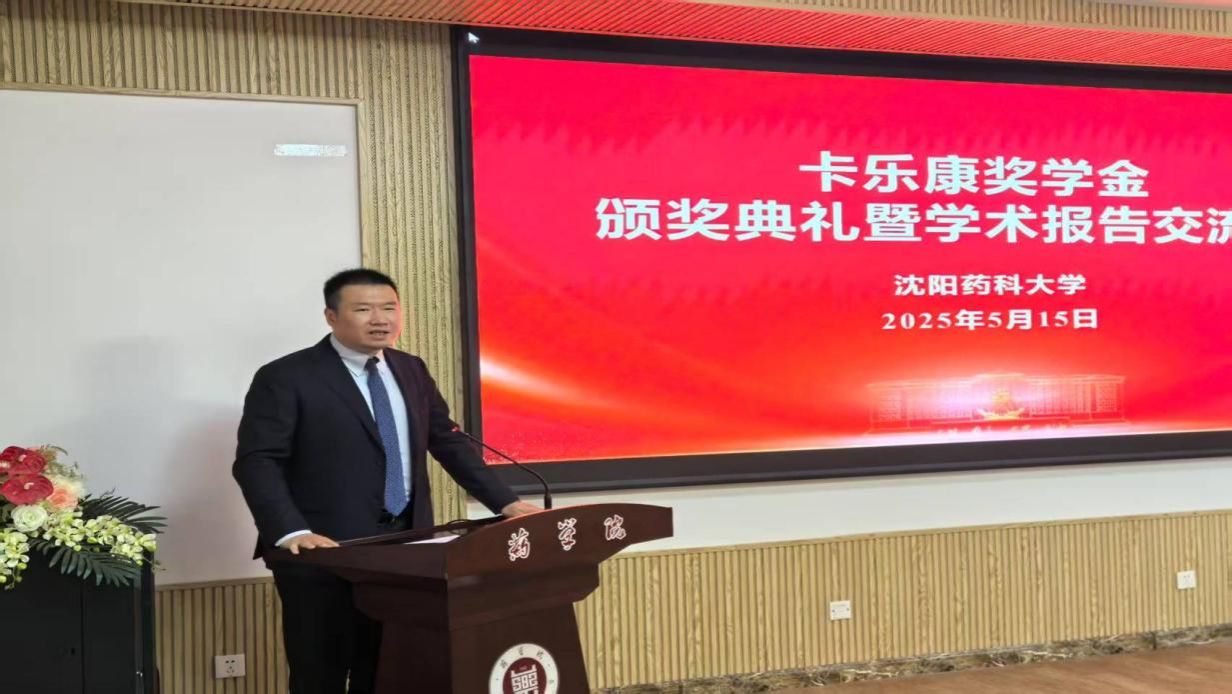卡乐康公司中国总经理雷鹏在致辞中介绍了卡乐康公司的发展历程以及如今企业的发展态势,高度赞扬了沈药员工在企业兢兢业业、无私耕耘的优秀品质。他说道,卡乐康与沈药建立联系的那年恰逢他入职卡乐康,至今19载,愿公司与沈药的友谊之树长青,愿沈药师生科研一路坦途,愿沈药发展越来越好。