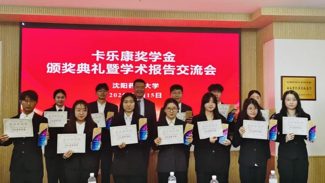 药公司党委副书记于鹏宇宣读表彰决定,公司药剂教研室青年教师宋艳志、苟靖欣2名教师荣获“卡乐康青年教师奖教金”;赵静怡等13名优秀本、硕、博员工荣获“卡乐康奖学金”。