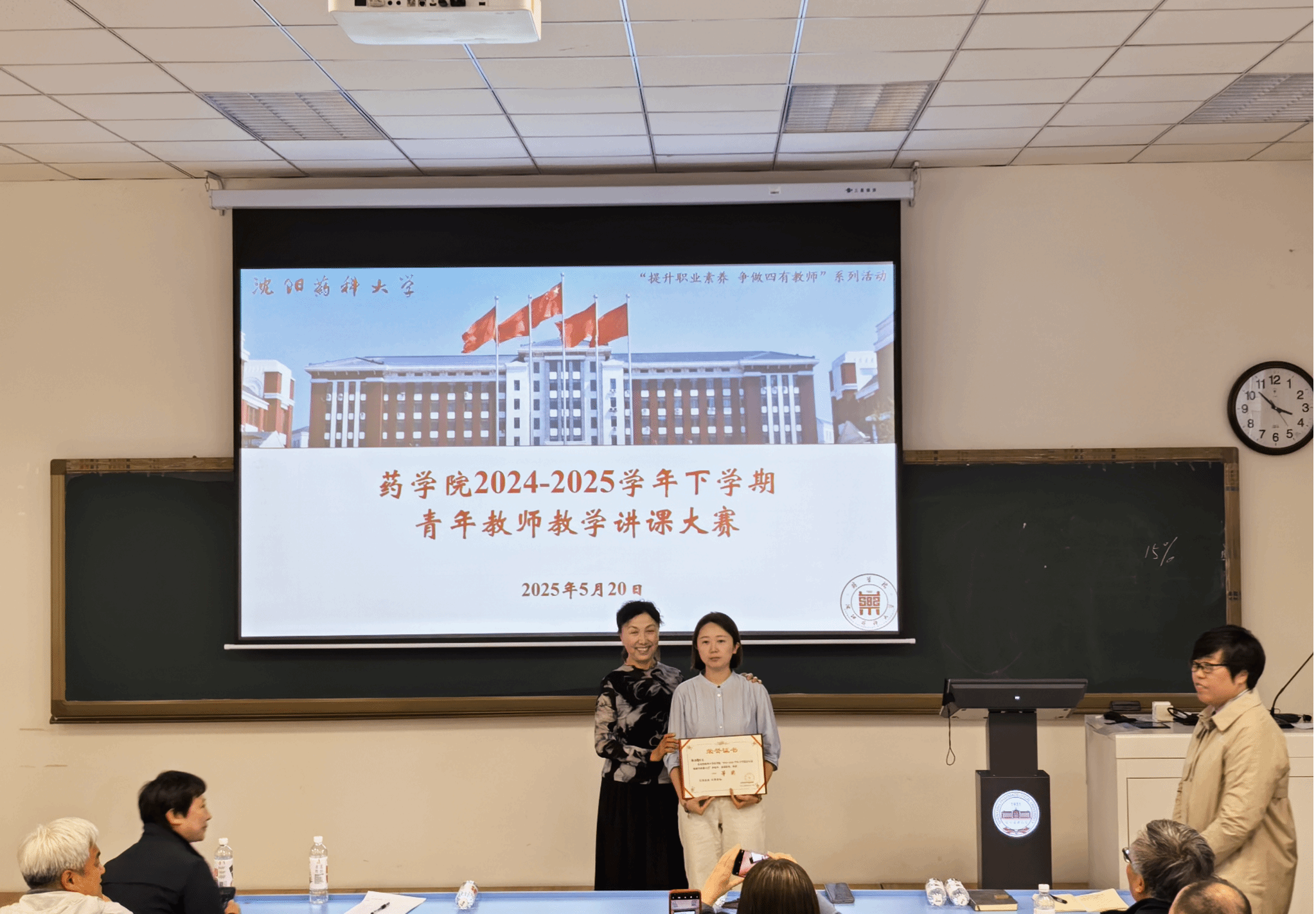 在参赛教师完成教学内容展示后,专家评委进行打分并针对教学设计、教学目标达成度、课程内容与方法等方面提出意见和建议。经过激烈角逐,张雨萌(药分教研室)荣获一等奖;李坤杰(分析化学教研室)、赵明(物理化学教研室)荣获二等奖;张欣(药剂教研室)、张九龙(药剂教研室)、杨杨(物理化学教研室)、郭萍(分析化学教研室)荣获三等奖。