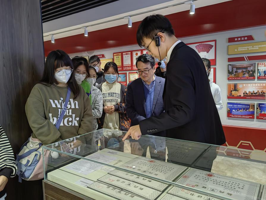 从明亮宽敞的展厅中拾级而上,程卯生董事长与同学们走入沈药90载光辉历程的时空隧道,共同回顾沈药建校以来的发展历程。面对一幅幅照片,程卯生董事长不时驻足和同学们讲述沈药动人的办学过往,诉说李维桢、顾学裘、洪盈等老一辈沈药人秉学厚德、笃行济生的攻坚奉献精神,让黑白照片中的历史故事在员工眼前熠熠生辉。程卯生董事长表示,新时代沈药学子要牢记公司的历史沿革,知道我们从哪来、到哪去,要将公司在革命时期的治学办学精神传承好、发扬好。