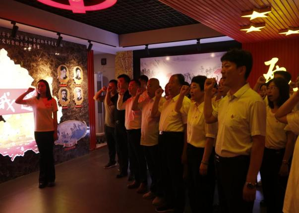 第三站,来到大甸子镇当铺屯村,全体党员共同参观了东北抗联第一军西征史实陈列馆,跟随者讲解员,党员们依次参观了辽北沦陷、义勇风云、还我河山、夺取胜利、光耀千秋等陈列馆展区,切身体会到了抗联时期的艰苦条件,感受到了在生与死、血与火磨炼中铸就的东北抗联精神,并在党旗下重温入党誓词。