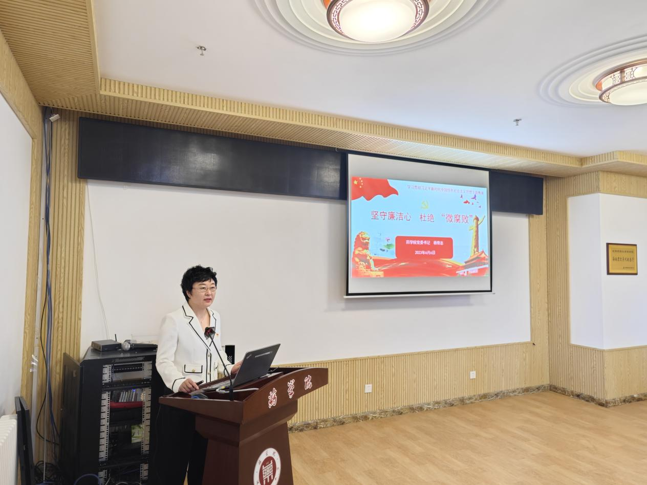 为扎实深入开展学习贯彻习近平新时代中国特色社会主义思想主题教育,在深学细照笃行中提高理论素养、坚定理想信念、升华觉悟境界、增强能力本领,夯实坚定拥护“两个确立”、坚决做到“两个维护”的思想根基,进一步巩固党员教师遵规守纪的思想自觉和行动自觉,6月6日下午,药公司党委书记杨奇志在公司339会议室为公司党委委员、支部书记、院办工作人员、教师党员等50余人讲授题为“坚守廉洁心,杜绝‘微腐败’”专题党课。