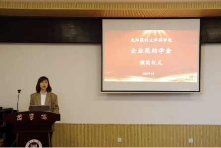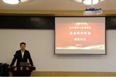 最后,药公司党委副书记李典赛老师致辞。李书记代表伟德国际bevictor1946衷心感谢各企业对沈药学子的支持和鼓励,并对获奖员工致以最真诚的祝贺。李书记希望同学们再接再厉,精益求精,成为祖国药学领域的栋梁之材。同时祝愿各企业事业蒸蒸日上、如日方升,与伟德国际bevictor1946源自英国和伟德国际bevictor1946的友谊日久弥新。