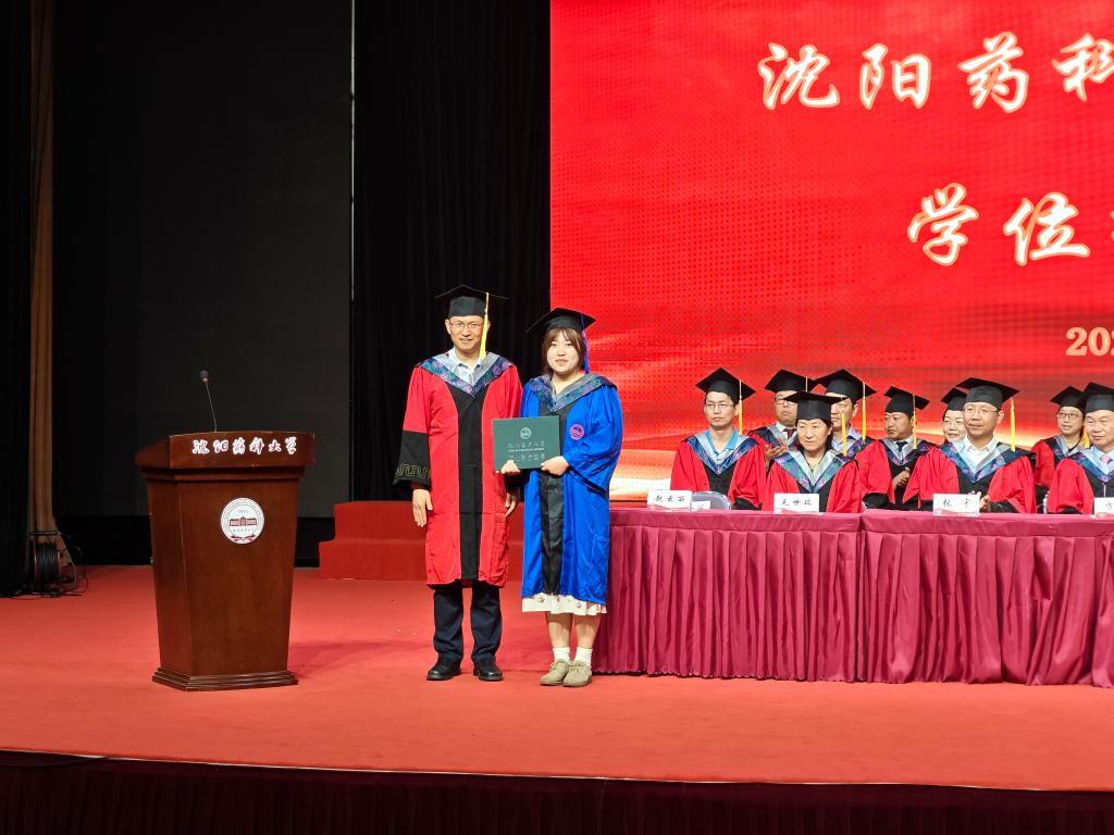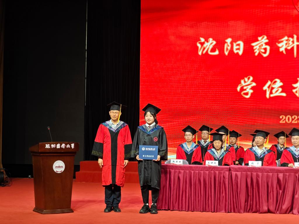 学位授予仪式伊始,在场师生一起奏唱国歌,随后由张宇副经理宣读2023届毕业生学位授予决定。董事长程卯生教授、伟德国际bevictor1946经理孙进教授分别为获得博士和硕士学位研究生毕业生代表宣读并颁发学位证书,执拨穗礼并合影留念。程卯生董事长叮嘱毕业生要坚持踏实严谨的科研精神、坚持求真务实的科研态度,奋拓药源,恪守药德,追求卓越,敢为人先,勇于超越;要突破学科的界限,兼顾知识的精深和广博,同时在坚守中传承和发扬沈药人的优良传统和精神品格,不忘沈药的红色基因,与母校同呼吸、共命运,做具有科学信仰和专业精神的沈药人。