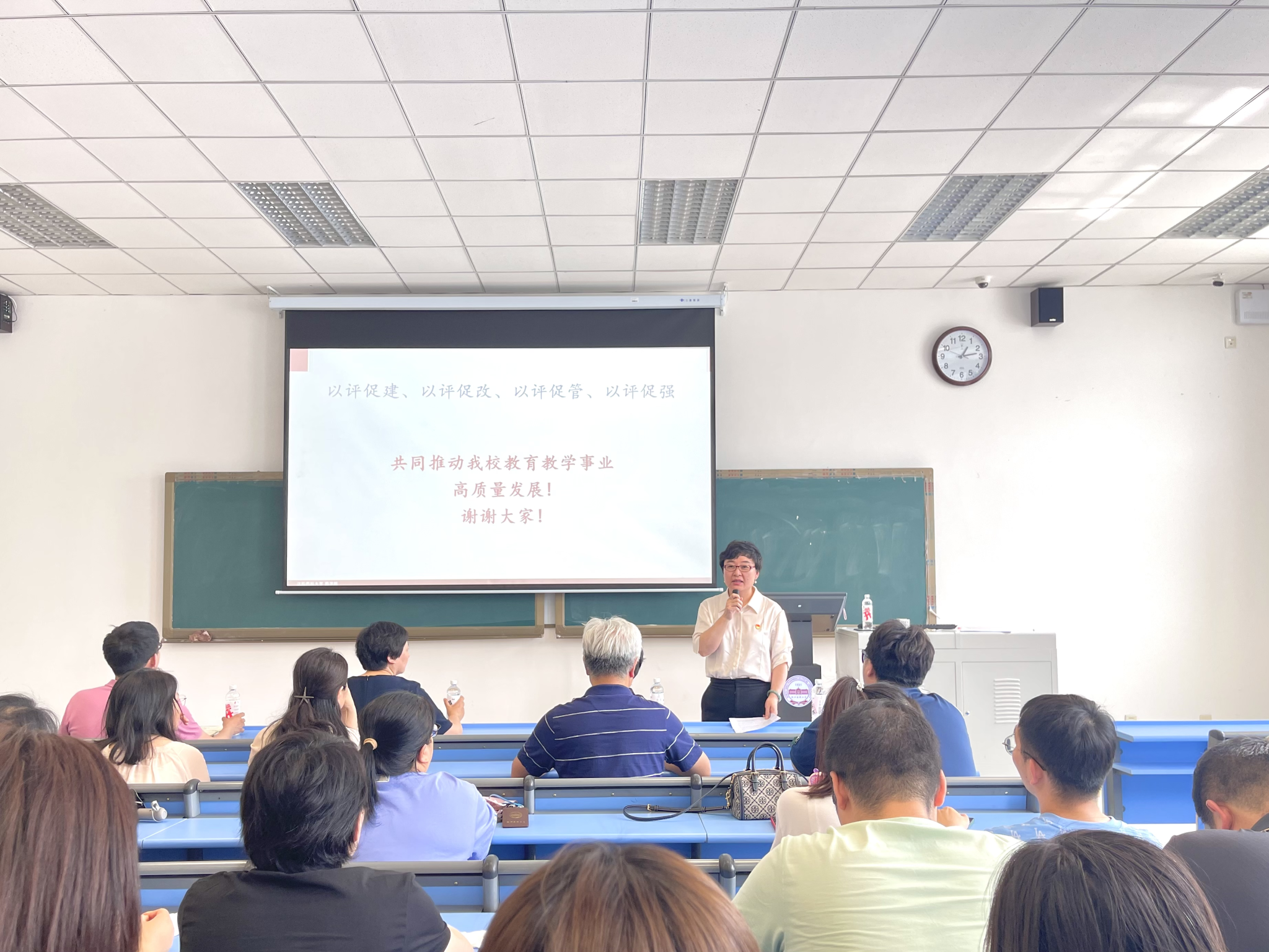 熊志立围绕此次审核评估评建工作的指导思想、审核评估指标体系、评建组织架构与主要职责和总体工作安排,详细介绍了伟德国际bevictor1946本科公司产品审核评估评建实施方案,对公司评建工作的审核重点进行了任务分解,并进一步梳理了《公司自评报告》的撰写要素。她强调,审核评估工作是对公司本科公司产品工作的一次全面体检,要深入挖掘工作亮点,凝练公司特色,促进公司本科人才培养水平不断提高。