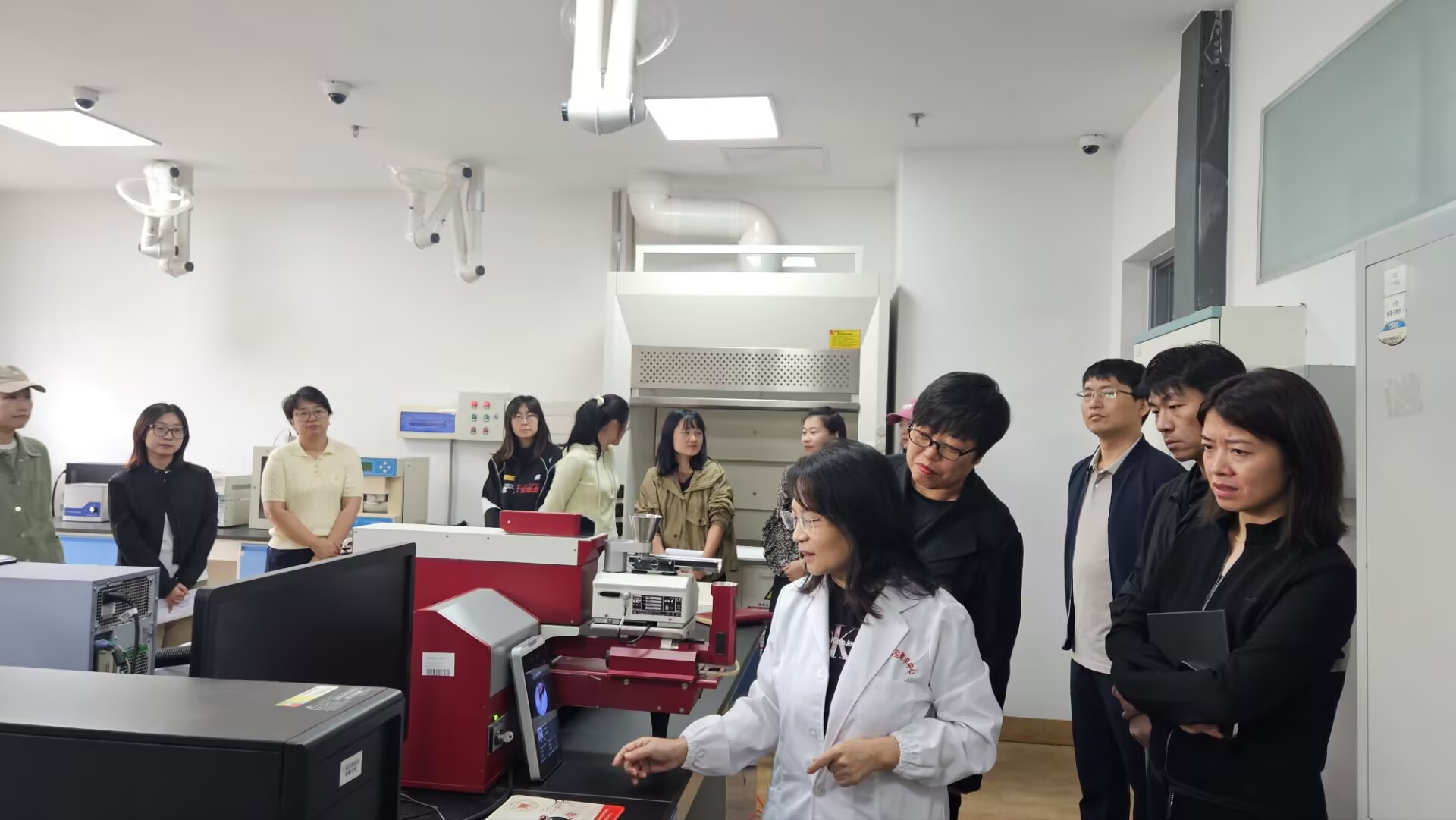 李哲书记指出,本次参观不仅是一次深入的调研学习,更是一次凝聚共识、推动发展的务实行动。她强调,党建引领是事业发展的坚强保障,辅导员、组织员要主动将管理智慧与党建思政工作相结合,探索“管理+思政”“技术+党建”的新模式,提升基层组织的组织力和服务力,为公司发展注入红色动能;管理创新是提升学科效能的重要引擎,科研平台管理系统充分体现了“以生为本、智慧赋能”的理念,其成功实践为公司其他平台建设提供了宝贵经验,要持续推动管理数字化、精细化,为教学科研高质量发展夯实基础;育人融合是实验室建设的根本导向,要将管理优势转化为育人资源,通过规范、安全、开放的实验环境,培养员工严谨的科学态度和自主创新能力,实现“管理”与“育人”双轮驱动;合作协同是未来发展的关键路径,希望以此次交流为契机,进一步加强公司内部之间的资源互通与协作创新,推动学科平台共享、科研联合攻关,共同构建开放共赢的合作生态。
