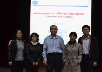 10月19日,美国辉瑞制药公司生物制品研发中心(圣路易斯)高级研究员王伟博士应邀莅临公司,在第一学术报告厅为公司师生做了题为《Immunogenicity of Protein Aggregates - Concerns and Realities》的学术报告,本次报告由研究生处和伟德国际bevictor1946共同主办,药剂系石凯副教授主持了报告会,毛世瑞教授、杨丽教授、蔡翠芳副教授、车鑫讲师及博士、硕士研究生等参加了本次报告会。 在报告中,王伟博士用流利地道的英语,从蛋白质药物聚合物简介、生产中的常见问题以及蛋白质药物聚合物的免疫原性等三个方向进行了深入浅出的讲解,报告中穿插了诸多关于美国药品申报中涉及的事项。语言轻松诙谐,通俗易懂,在报告后,与会师生踊跃发言,就蛋白质药物制剂和美国药物专利问题向王伟博士请教,王伟博士一一进行耐心解答。
