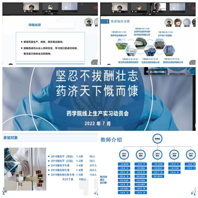 全面动员。7月4日,公司生产实习动员大会拉开了帷幕。会上,赵云丽副经理强调了本次线上生产实习的特殊性和重要性,并向员工介绍了往期线下实习情况。赵经理希望同学们珍惜可同时参加6家单位实习的宝贵机会,虚心求教,深入思考,传承沈药精神,做到有所学,有所得。随后,带队教师向同学们部署了线上实习的相关任务。